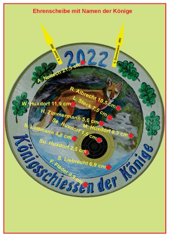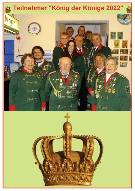 Am 12.März 2022 führte die Gilde das traditionelle Königsschießen der Könige durch. Der amtierende König Lucas Steck "Das Adlerauge" lud alle ehemaligen Majestäten um 18:00 Uhr ins Vereinshaus.
